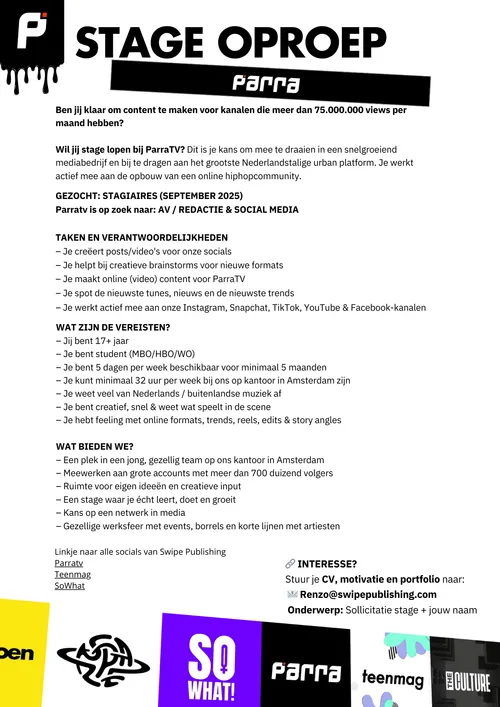 STAGE OPROEP PARRATV 2025