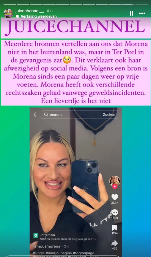 Door de afwezigheid ontstonden er al geruchten over Morena, volgens JuiceChannel zijn er een hoop mensen die aangeven dat de influencer pas net op vrije voeten is nadat zij vastzat in Ter Peel. Morena kwam eerder in problemen met justitie om verschillende