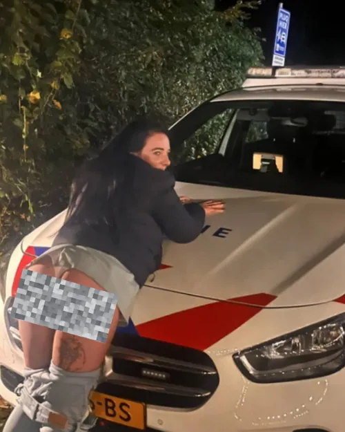 Nicol Kremers heeft een bizarre foto gedeeld op haar 'fanpagina'. Ze poseert met met een bloot achterwerk op de motorkap van een politieauto. Nieuws en entertainment website